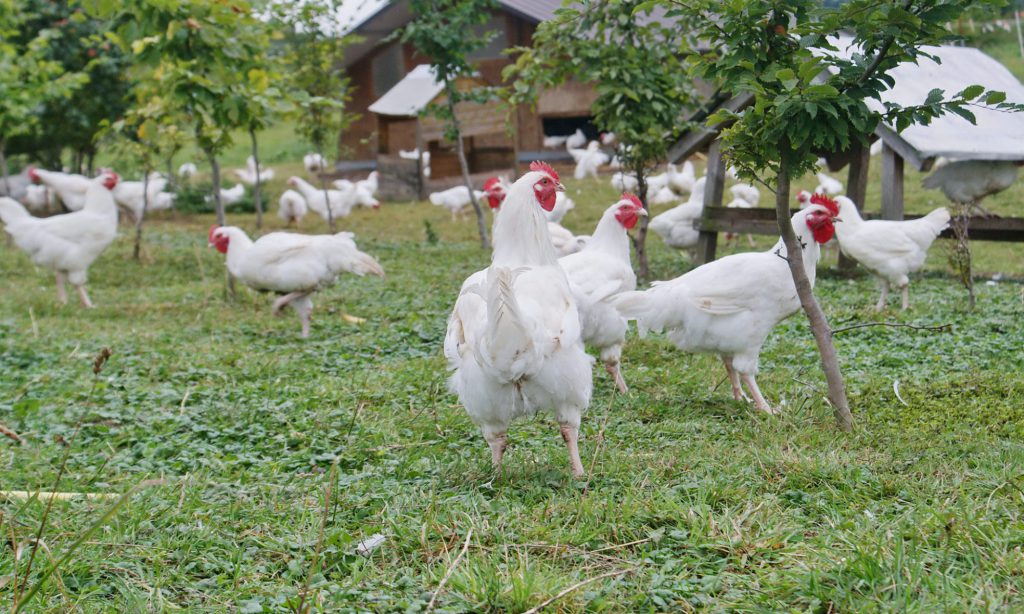 Ab der 6. Lebenswoche ziehen die Tiere in Ställe mit Grünauslauf um. Ihnen stehen dabei wechselweise drei feste Ställe und zwei Mobilställe zur Verfügung. Sobald sie zu Jungmasthühnern herangewachsen sind, nutzen sie neugierig den Auslauf im Freien.