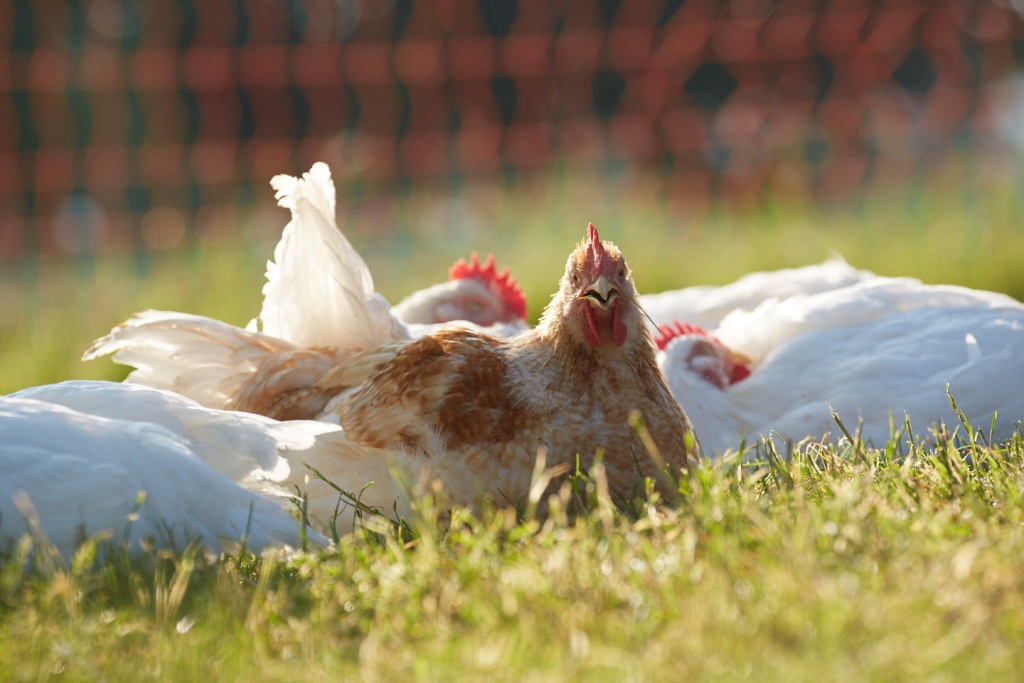 Ab der 6. Lebenswoche ziehen sie in einen Stall mit Grünauslauf um. Den Tieren stehen wechselweise 3 Fest – und 2 Mobilställe zur Verfügung. Sind die Küken schon zu Jungmasthühnern herangewachsen, freuen Sie sich, an die frische Luft zu dürfen und erkunden neugierig ihre Umgebung. Allerdings darf es nicht zu zugig sein – nasskaltes und windiges Wetter gefällt ihnen nicht. Außerdem benötigen Sie Büsche und Unterholz, um sich vor Raubvögeln sicher zu fühlen.