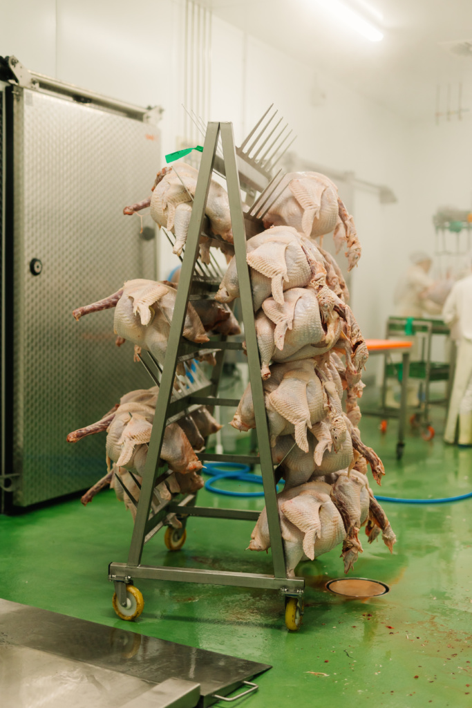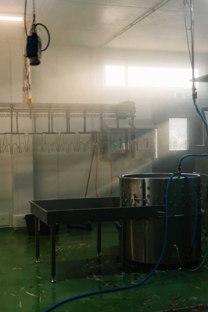 Der in 2003 gekaufte Schlachtbetrieb ist über die Jahre hinweg nicht mehr groß genug gewesen um weiter zu wachsen, so bemühten wir uns bereits seit 2017 um eine Neubau Genehmigung. 2020 erhielten wir die Baugenehmigung für das Gewerbegebiet Unterrieden. Im April 2021 begonnen die Bauarbeiten bereits, durch Coronabedingte Verzögerungen sowie Lieferengpässe wurde der Bau jedoch erst im Mai 2023 abgeschlossen sodass wir nun seit Juni 2023 in der neuen Betriebsstätte arbeiten. Hier ist schön viel Platz und alles etwas moderner, wir schauen zuversichtlich auf die nächsten Jahre und haben endlich wieder freie Kapazitäten uns weiter zu entwickeln! Bei Interesse können Sie sich gerne die Schlachterei (nur zu bestimmten Terminen) bei einer Führung anschauen um einen Eindruck zu erhalten wie wir hier arbeiten und wie das Geflügel «verarbeitet» wird.